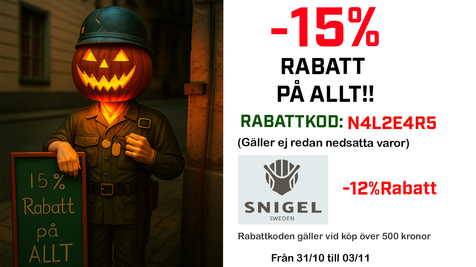 Garderoben har sålt militärkläder, taktisk utrustning, militärkängor, skor, airsoftvapen, knivar, ryggsäckar och väskor sedan 1982. Bland våra kunder finns Försvarsmakten, polis, ordningsvakter, ordningsvakter och medvetna människor med passion för jakt, camping och friluftsliv, airsoft och överlevnad.