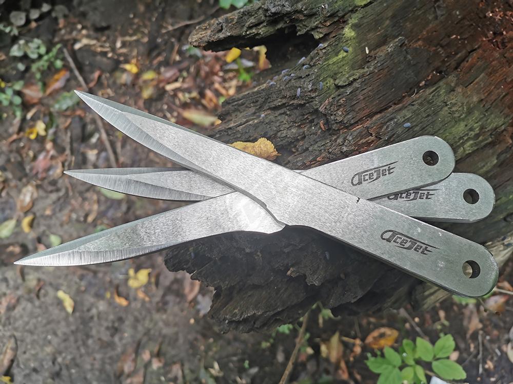 På grund av materialet av bästa kvalitet (14260 Fjäderstål) och knivarnas stora tjocklek är de praktiskt taget oförstörbara och kan träffa målet med enorm kraft.