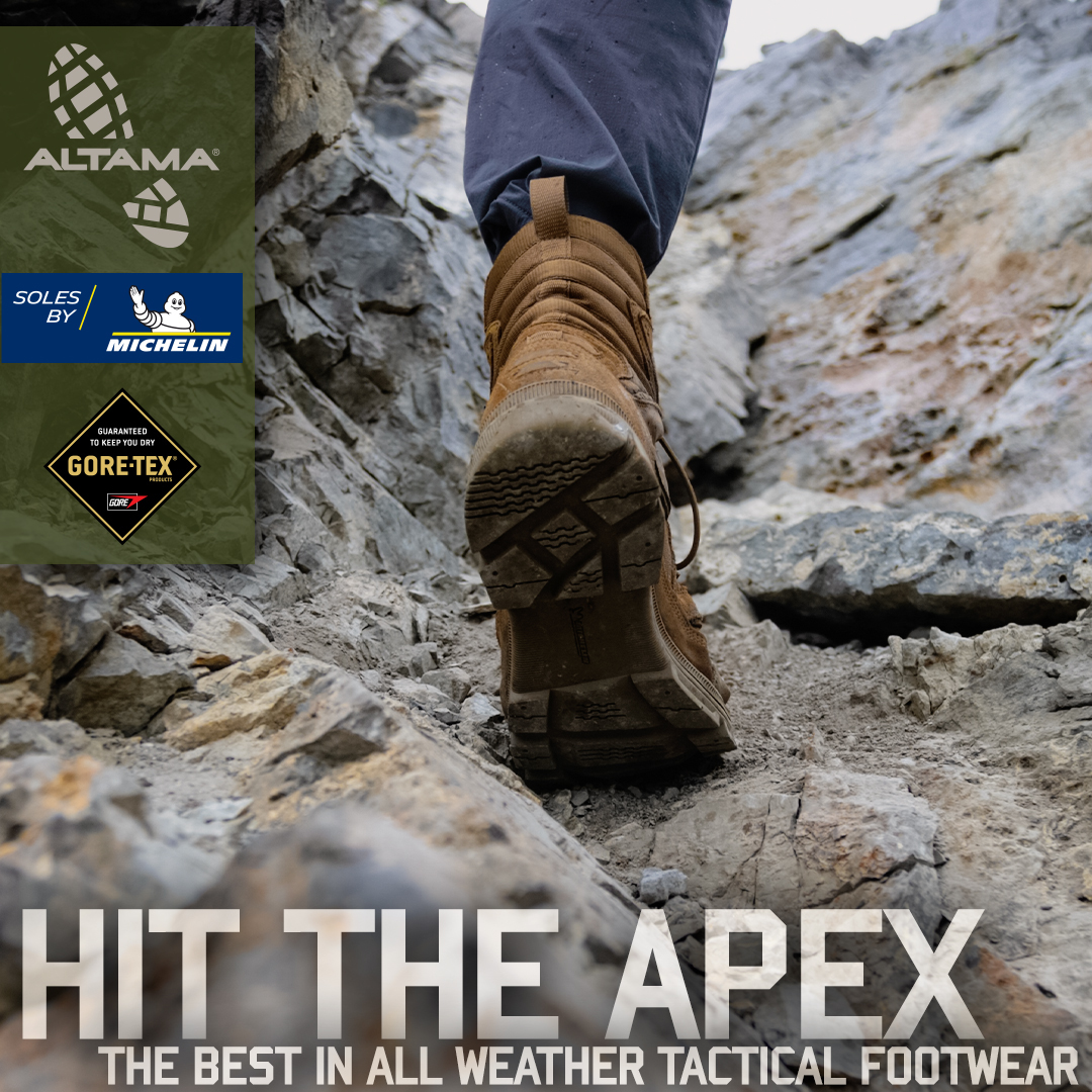 Altama samarbetar med Michelin, expert på gummi- och slitbanedesign, för att utrusta de här kängorna med mycket avancerade yttersulor.