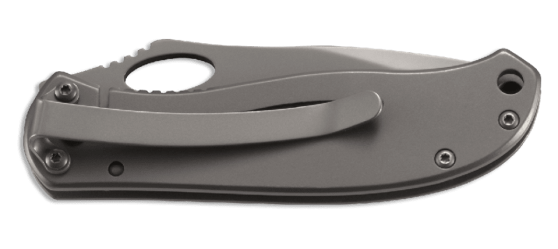 Pazoda™ är en elegant ramlåsmapp med ett titannitridbelagt blad. Handtagen av rostfritt stål är också försedda med en grå titannitridbeläggning, och sedan en borstad yta endast på den yttre ytan, vilket lämnar ett gott om ljust område för prägling eller gravering. Det ovala bladhålet möjliggör snabb öppning med båda händerna.