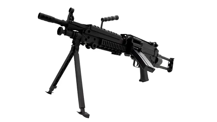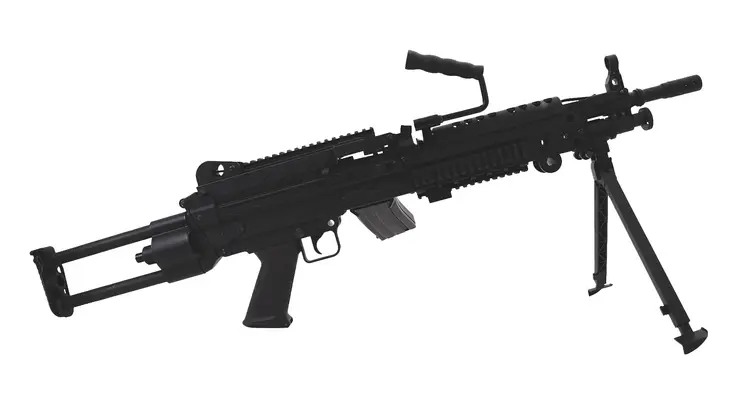 - Para version of the FN M249 with retractable stock, carry handle, bipod and short barrel.