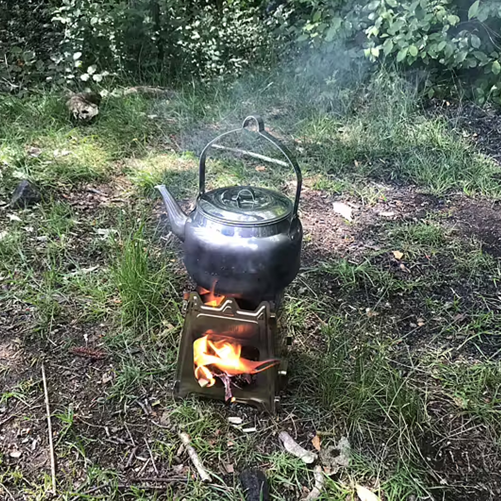 Detta smidiga och kompakta friluftskök är ett mångsidigt redskap för dig som gillar att vistas ute i naturen. Du kan elda med små pinnar direkt från marken eller använda en stormköksbrännare – perfekt för att koka kaffe, te eller värma mat i en kastrull.