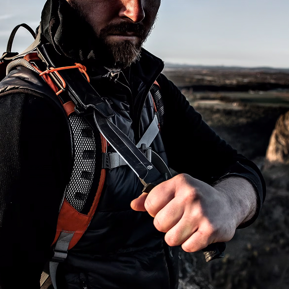 Det MOLLE-kompatibla multimonteringsslidssystemet erbjuder optimal anpassning och håller din kniv alltid redo i stridssituationer.