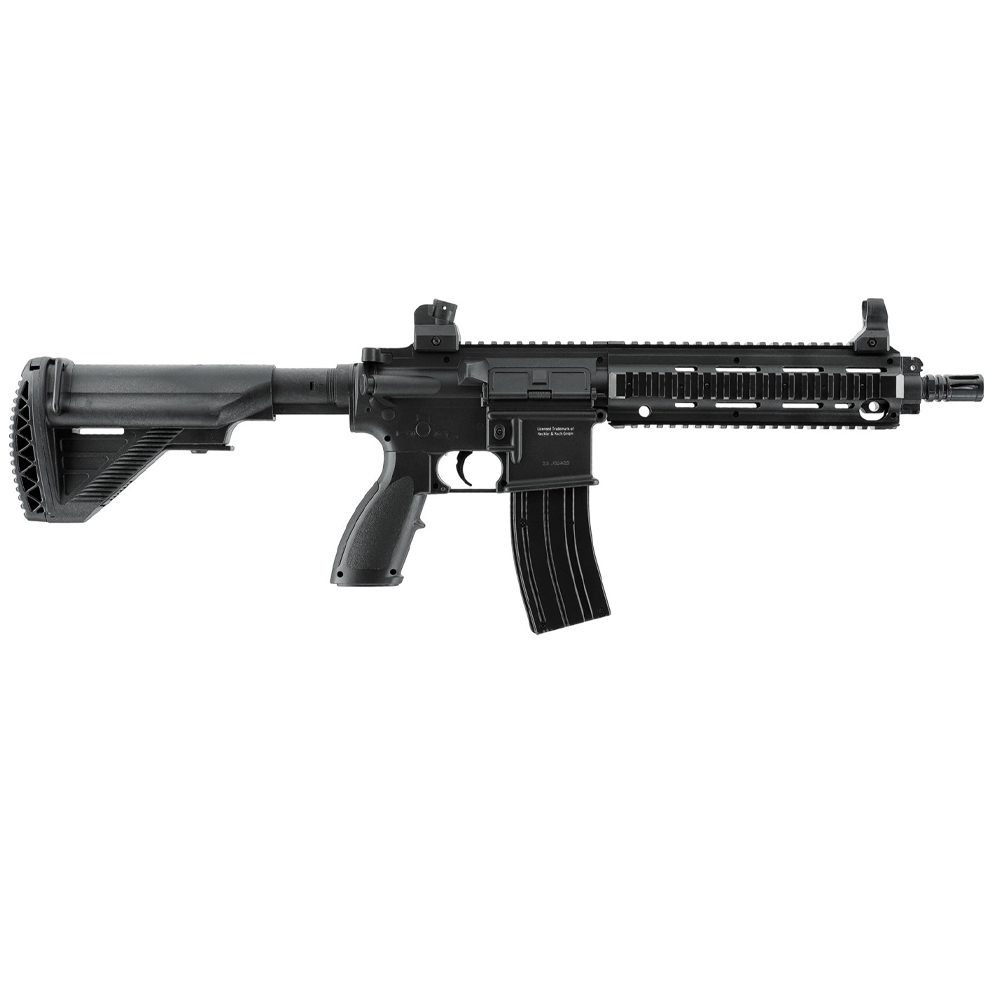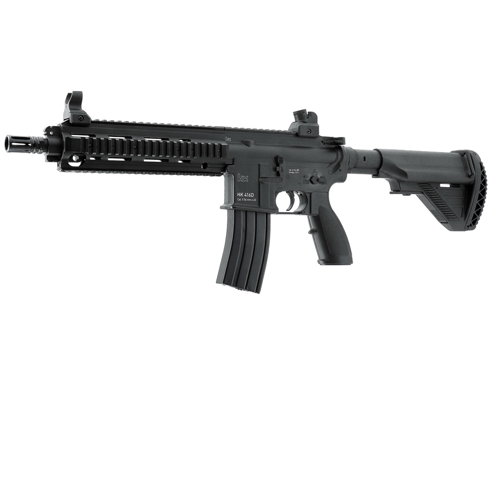 HK416 D är en av världens mest kända och populära AR-plattformar, nu i airsoftversion från Umarex. Den eldrivna AEG-versionen erbjuder semi- och fullautoläge med en eldhastighet på upp till 1000 skott/minut, perfekt för intensiva strider på banan. Den robusta konstruktionen med aluminium-pipa, Picatinny quadrail och justerbar stock ger vapnet både realism och prestanda.