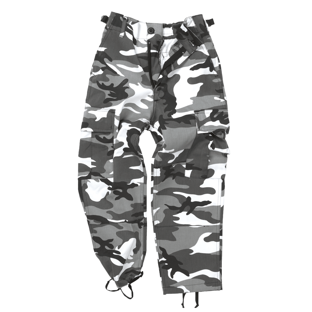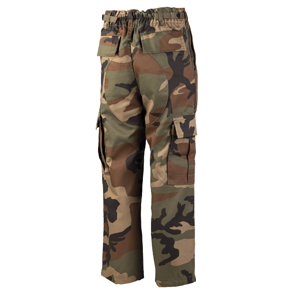 Kamouflagebyxa för juniorer i högsta bomull och polyester. Mjuka och passar alla årstider. Byxan har två framfickor, två bakfickor samt två benfickor. Spännband vid linningen och snörning nertill.
