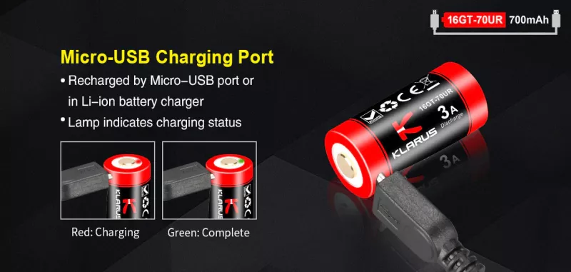 Klarus 700 mAh Laddningsbart Batteri