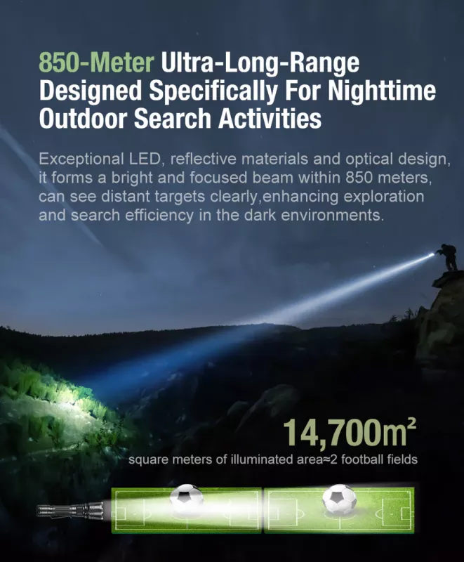 - 850 meters ultra long range Designed specifically for nighttime outdoor search activities