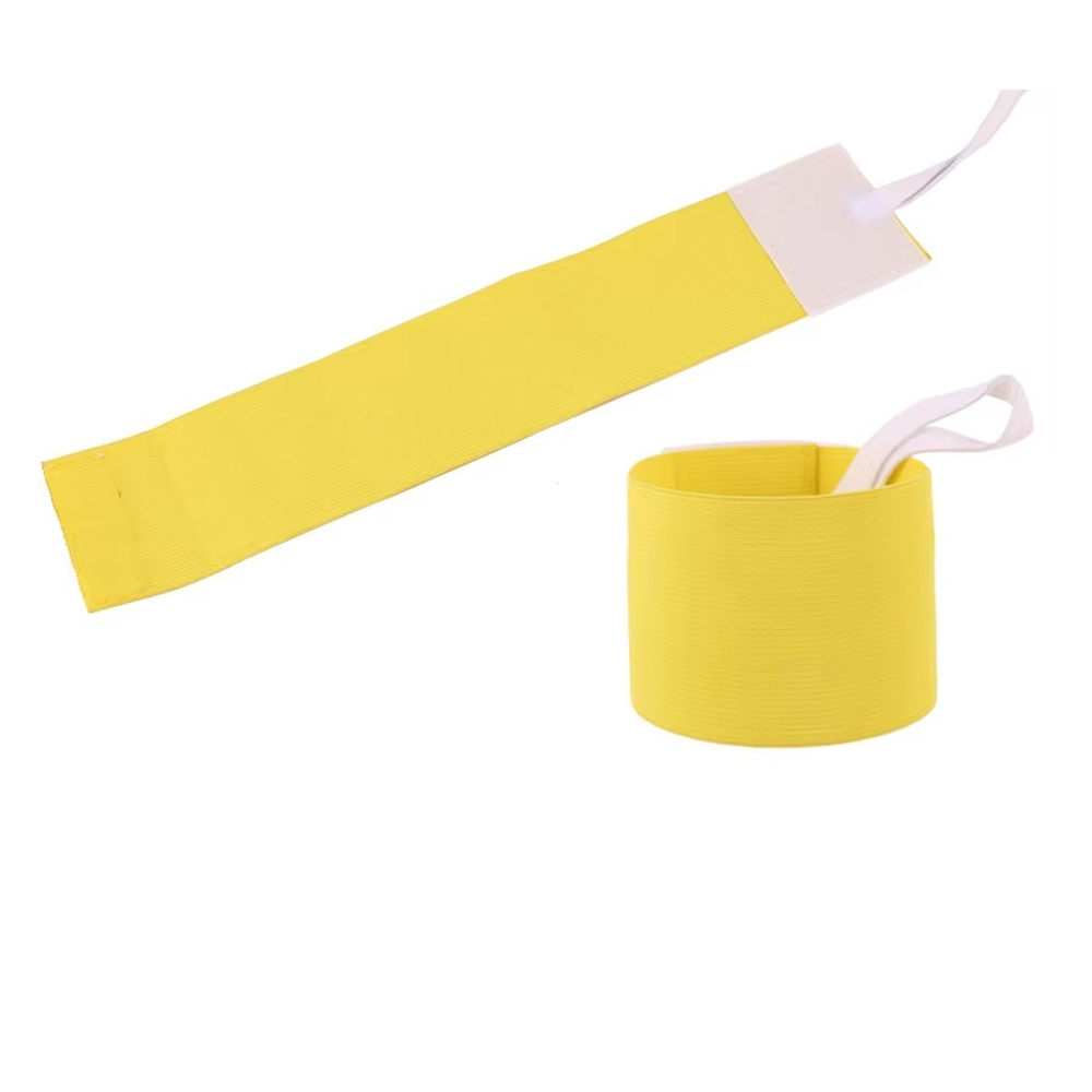 Armbandet är 35 cm långt och 7 cm brett, vilket gör det bekvämt och synligt att bära runt överarmen. Det elastiska materialet anpassar sig efter armens storlek och sitter tryggt på plats under aktivitet och rörelse. Finns i fyra färger – röd, gul, vit och blå – vilket gör det enkelt att dela upp lag eller roller vid spel och träning.
