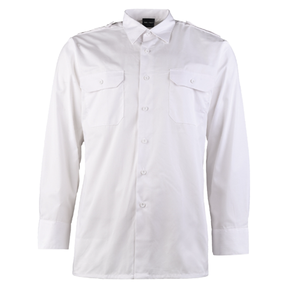 En klassisk, vit skjorta som den här pilotskjortan hör hemma i var mans garderob. Den är förstärkt med axelklaffar för en genuin uniformskänsla och är tillverkad i 65% polyester och 35% bomull.