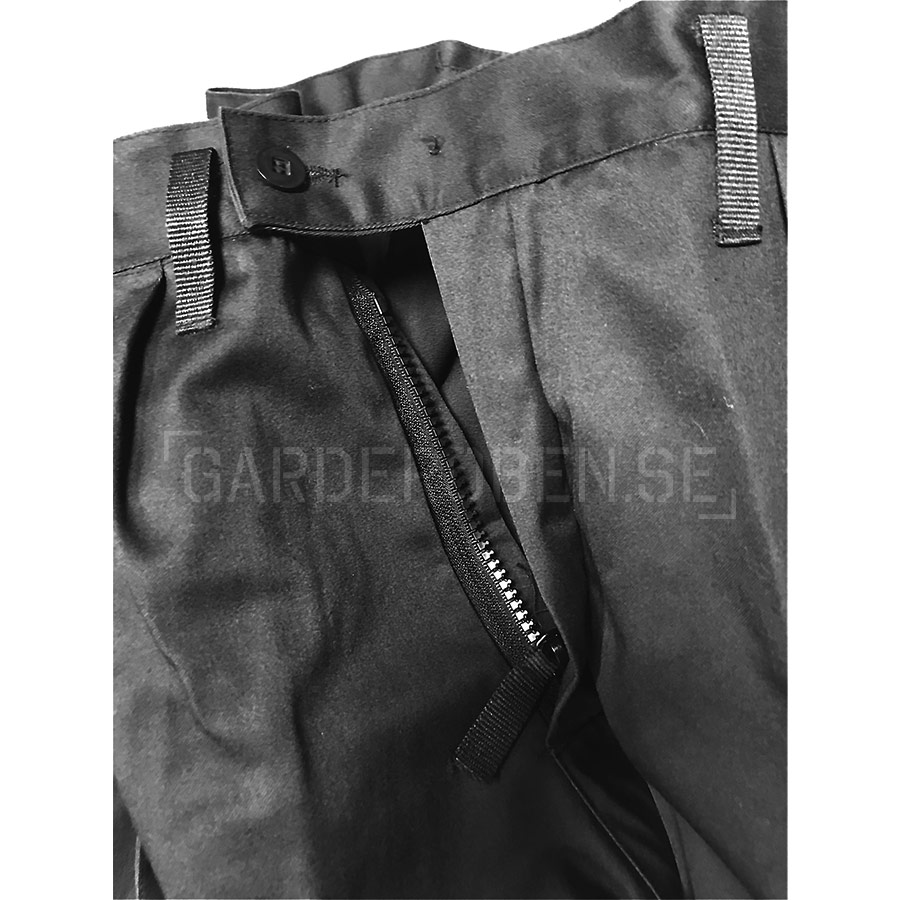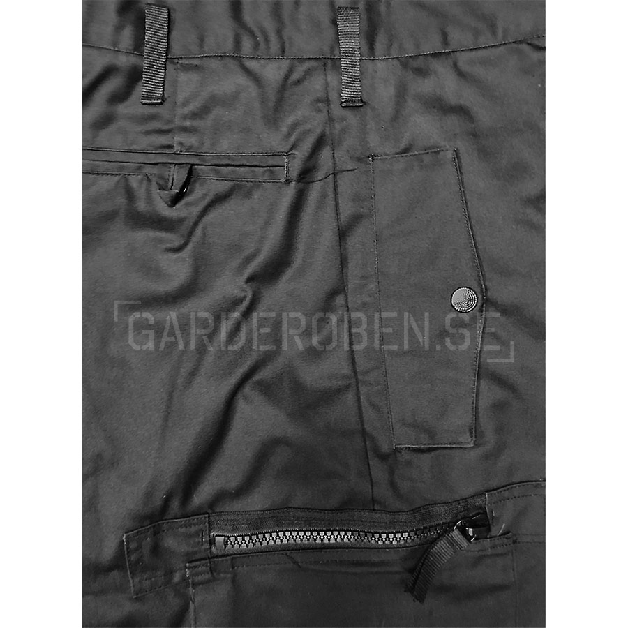 - Byxorna har 2 st snedställda fickor med knapp stängning framtill och 2 st benfickor med dragkedja. Bak 1 st ficka med knappstängning.