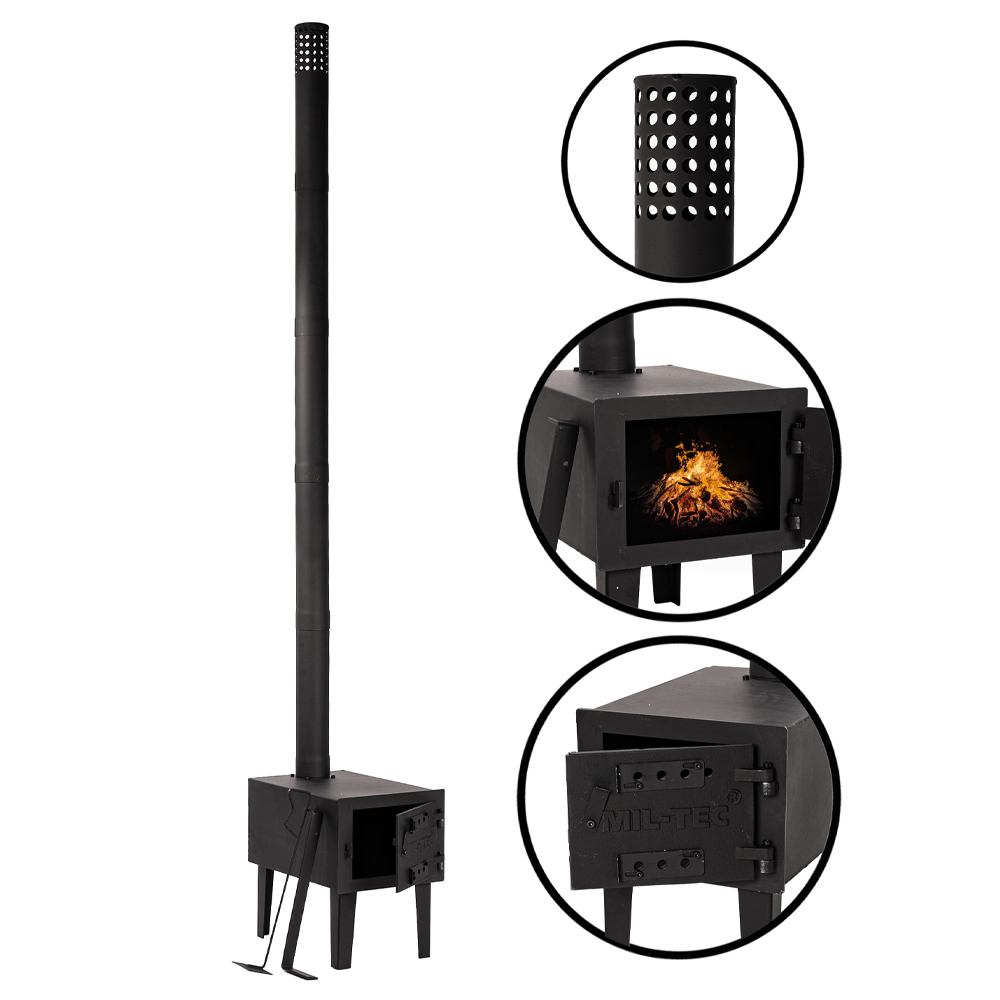 - tent stove for operation in fireproof tents with opening, tipis, yurts or outdoors