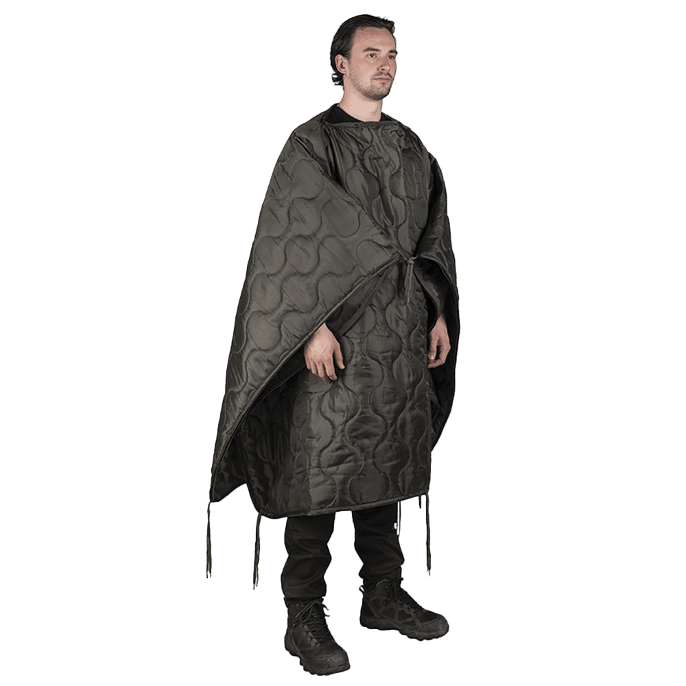 Ett foder som kan användas separat som en nödfilt eller knytas inuti en poncho (om ponchon har fästen för detta).