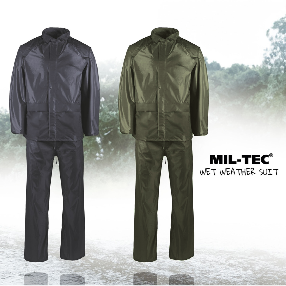 Jackan har dragkedja fram och två fickor. Jackan kan dras ihop i midjan med en snodd och luvan går att stoppa in i kragen. Byxorna har två fickor och midjan kan justeras med ett elastiskt band. Byxbenen kan dras ihop nedtill med en knapp.