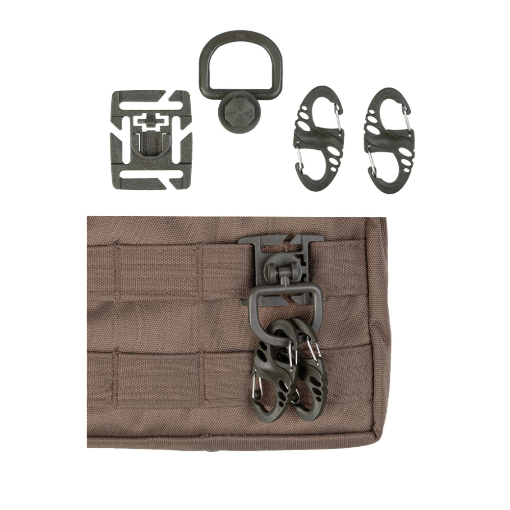 - Duraflex D-ring-fäste kan fästas på molle öglor