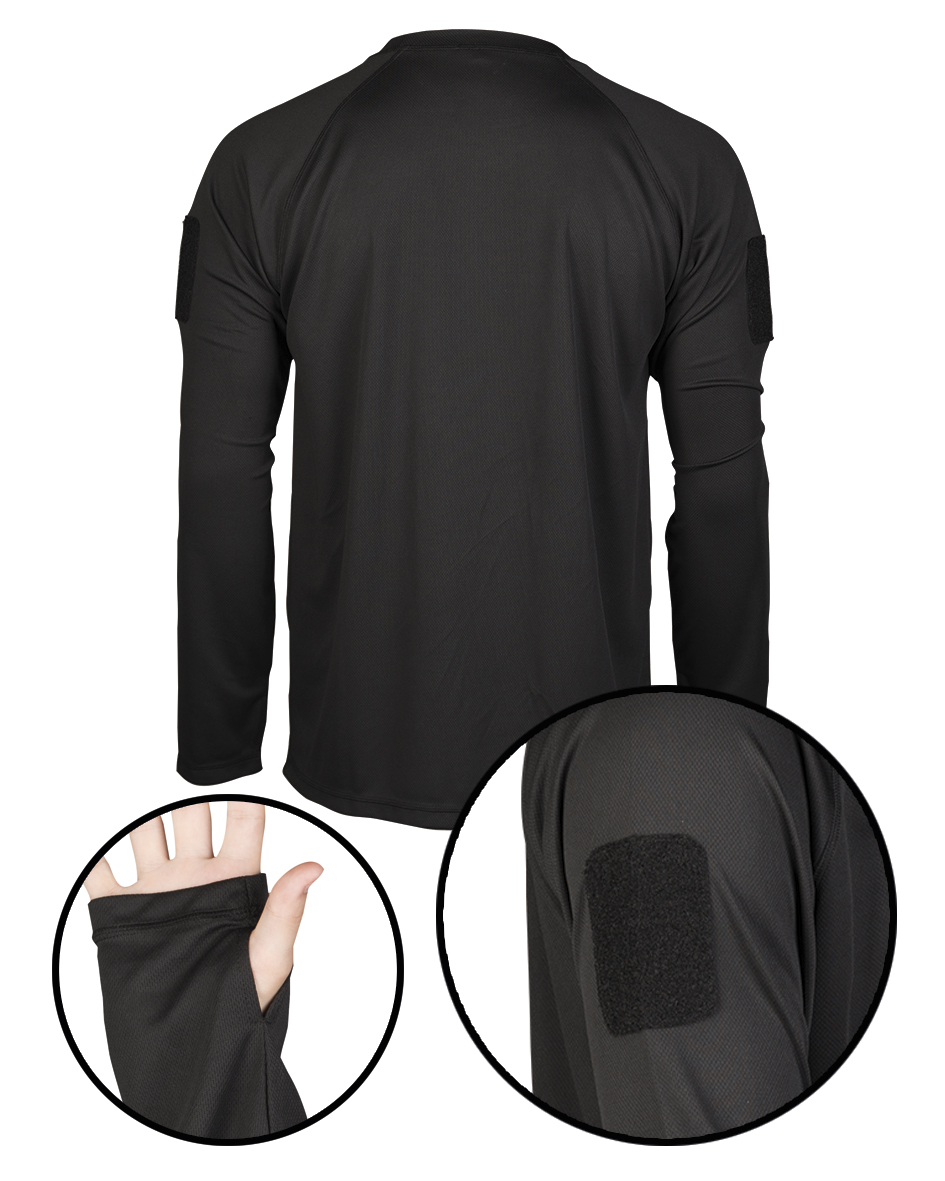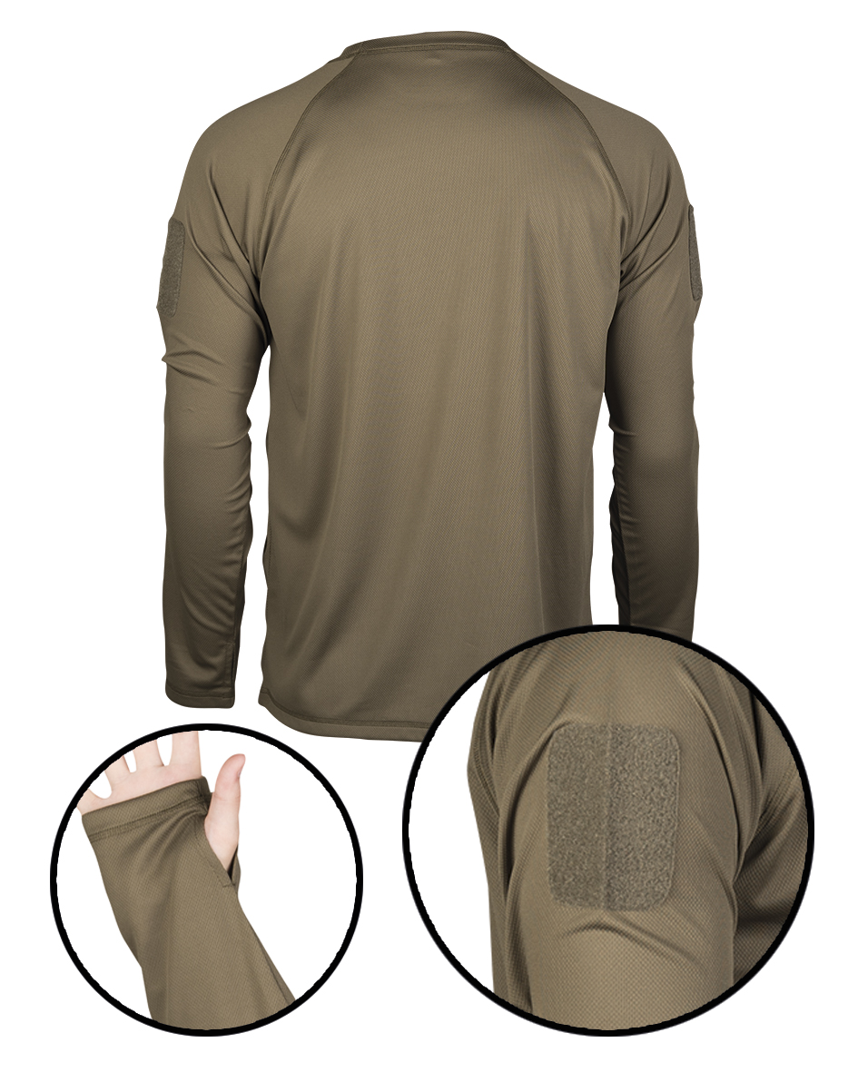 En långärmad snabbtorkande t-shirt med kardborre ytor för patch.