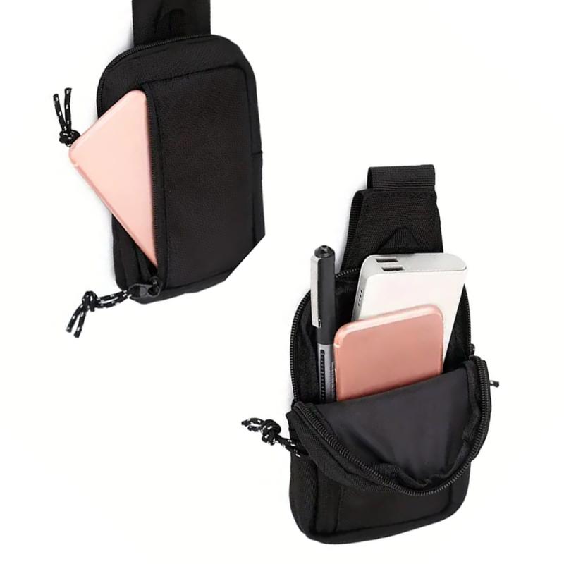 Denna mini crossbody-väska är designad för alla som behöver en kompakt men rymlig lösning för att bära med sig nödvändigheter. Tillverkad av slitstarkt material, har den en elegant svart design som kompletterar vilken outfit som helst. Den mångfunktionella designen gör att den kan bäras som en diagonal axelremsväska, perfekt för att hålla din telefon, powerbank och andra småsaker säkra och lättillgängliga under utomhussport, vandring, löpning, cykling, resor, arbete eller dagliga ärenden. Dess enkla men moderna design gör den till en praktisk och stilren accessoar.