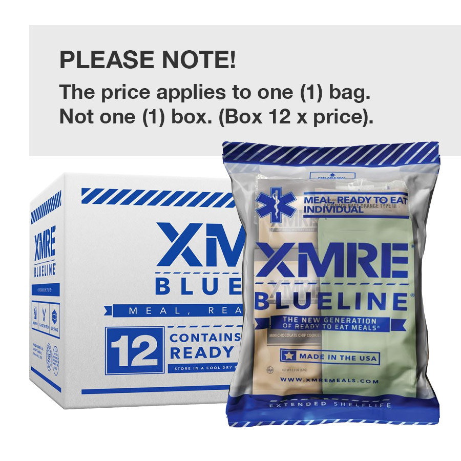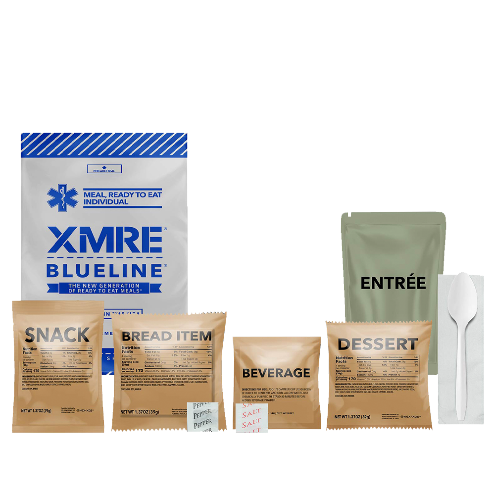 XMRE Blueline är en komplett amerikansk fältranson som är näringsrik och färdiglagad i en behändig förpackning.