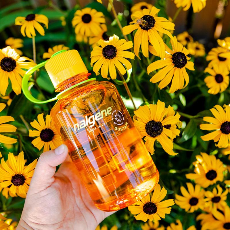 Nalgene Sustain är först på marknaden med att vara tillverkade med 50 % återvunnen plast och har tagits fram för att minska hur plastprodukter påverkar vår vackra natur. Vattenflaskorna är helt BPA/BPS och ftalat fria men resultatet blir ändå de slitstarka och snygga flaskorna vi är vana att se från Nalgene. Varje Sustain-produkt motsvarar cirka åtta engångsvattenflaskor. Graderingen på sidan gör det enkelt att hålla koll på dagens vätskeintag. Flaskan varken tar eller ger smak eller lukt till drycken. Korken är patenterad och läcksäker tack vare sin V-ringspackning och går att byta, det finns flera färger att välja mellan. Finns också i storleken 1 liter och som Wide-mouth.