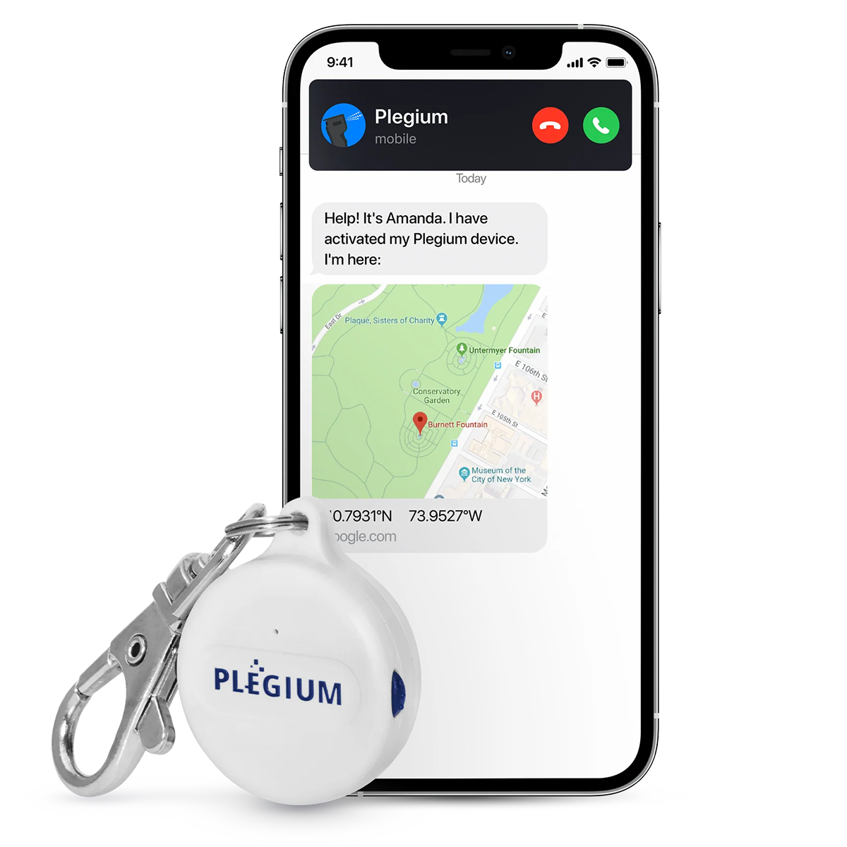 En bärbar tyst larmknapp som parkopplar med din mobiltelefon.