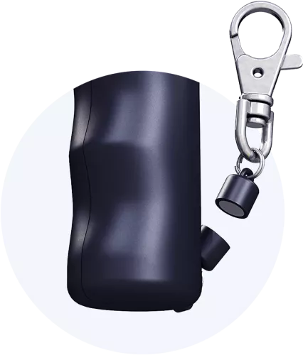 Häng din Plegium försvarsspray på nyckelknippan eller i ett fack på insidan av väskan – så vet du var du har den. Om du behöver använda sprayen är det bara att rycka loss den – nyckelkedjan delar på sig så att du snabbt får fram sprayen.