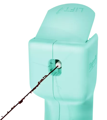 Vår unika magnetiskt delbara nyckelkedja möjliggör att lossa sprayen med en hand.