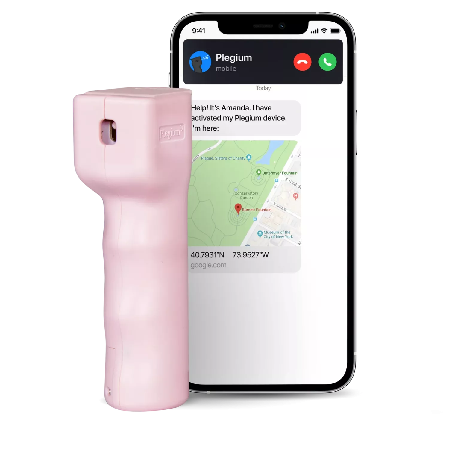Plegium är de enda försvarssprayerna i världen som automatiskt skickar SMS med dina GPS-koordinater samt ringer upp dina anhöriga när du avfyrar sprayen, så att du kan få hjälp snabbare.