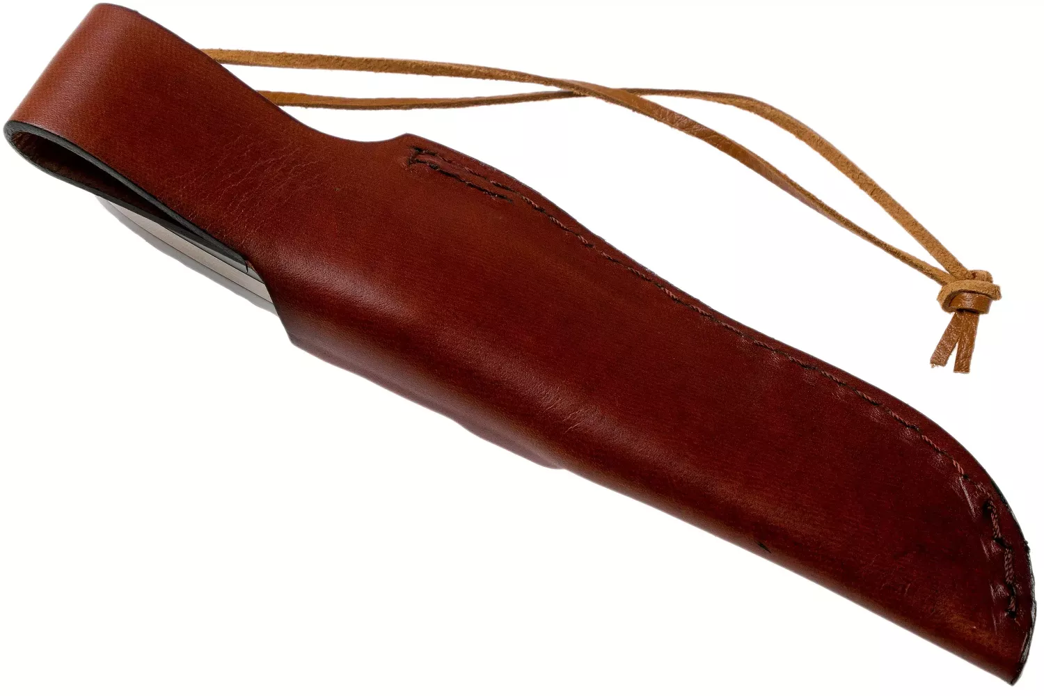 Den här kniven med fast blad har ett 3,6-tums bakblad av rostfritt stål med hög kolhalt och de realistiska Stagalon-handtagen som ser ut som en riktig stag, utan kostnad. Den levereras med ett läderslida.