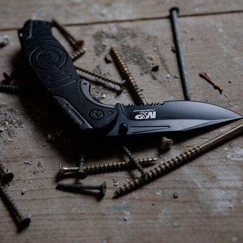 Kniven är tillverkad av 8Cr13MoV rostfritt stål och har ett fallpunktsblad.