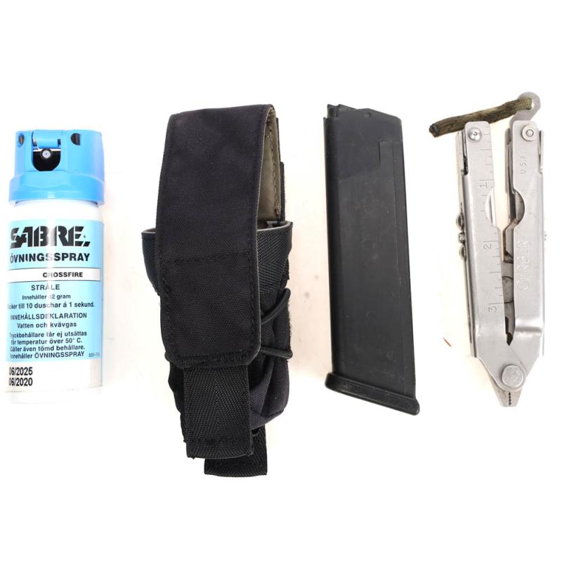 | Passar för | Pepper spray short, short wide flash lights, distraction grenades, 40 mm grenades, GPS, mobile. |