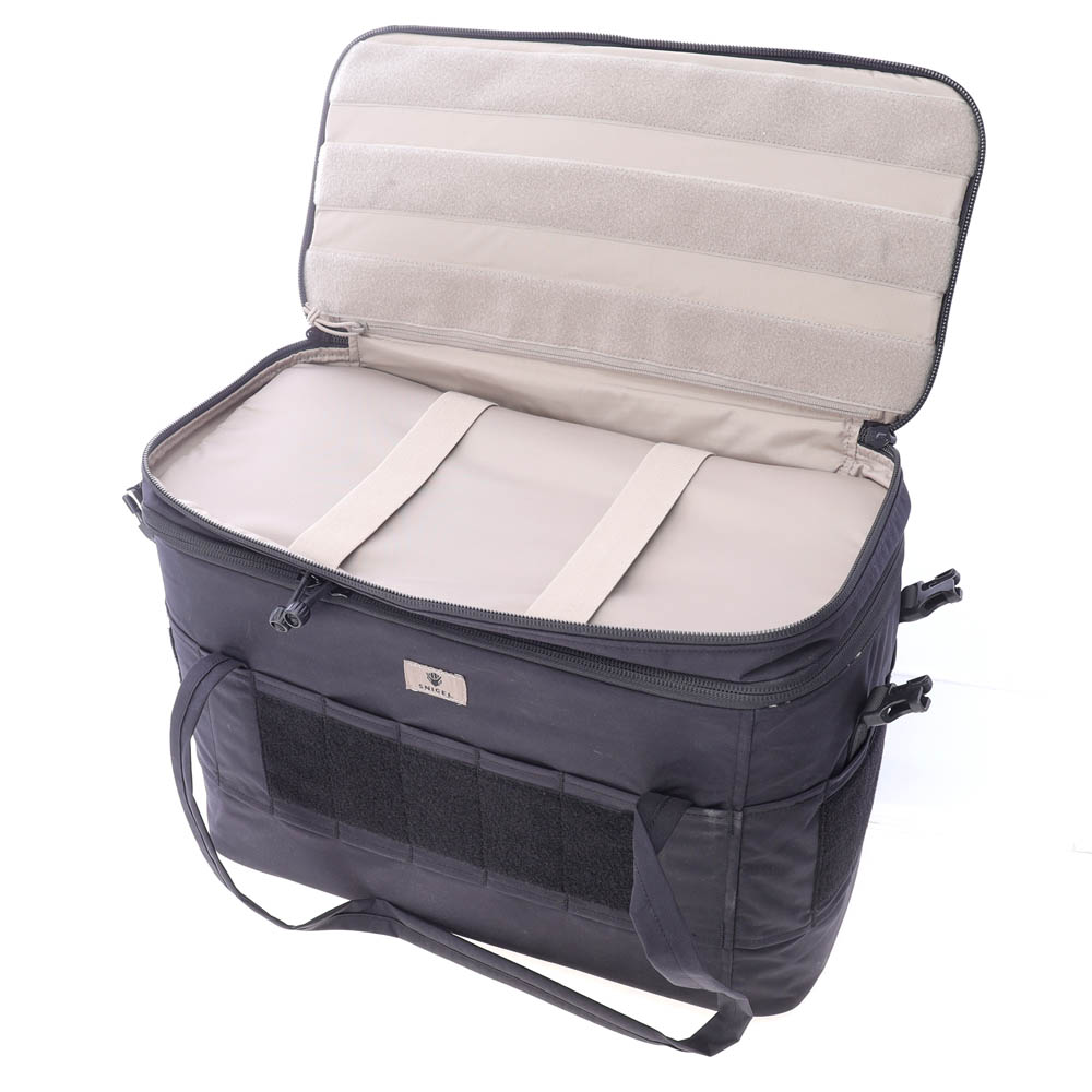 - Ett stort fack med kardborreband för att fästa lösa mellanväggar mot