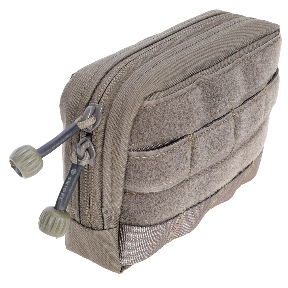 - Vikbart fästsystem gör det möjligt att fästa påsen på valfri utrustningsväst eller bälte. MOLLE/PALS webbing på utsidan.