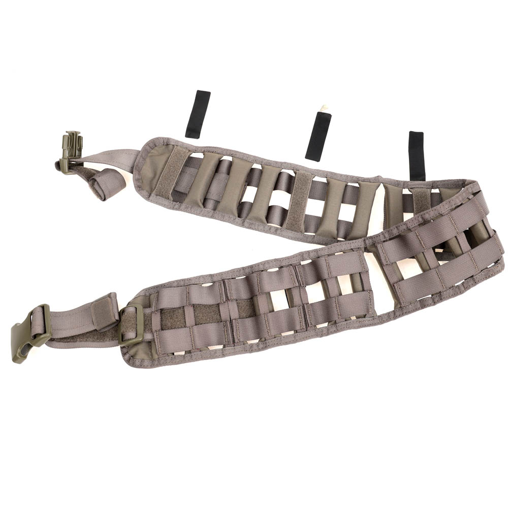 Bältet har skumfyllda ribbor som gör bältet bekvämt att använda, avtagbar krok för byxbältesanslutning och två sydda MOLLE band sydda på utsidan för att bekvämt bära fickor eller hölster.