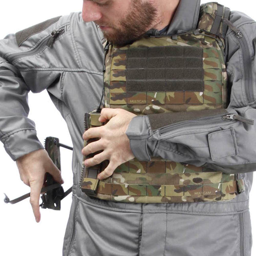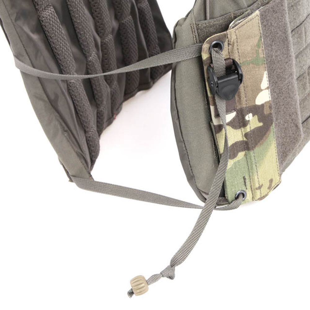 Squeeze Quick Adjust -17 är den ventilationsvänliga lösningen för din Squeeze plate carrier. Den 10 mm breda webbing-remmen fästs framtill med blixtlås och går genom ett spänne. Genom att dra i remmens ände dras plate carrieren ihop, vilket lämnar sidorna öppna samtidigt som du kan fästa fickor på webbingen i sidorna.