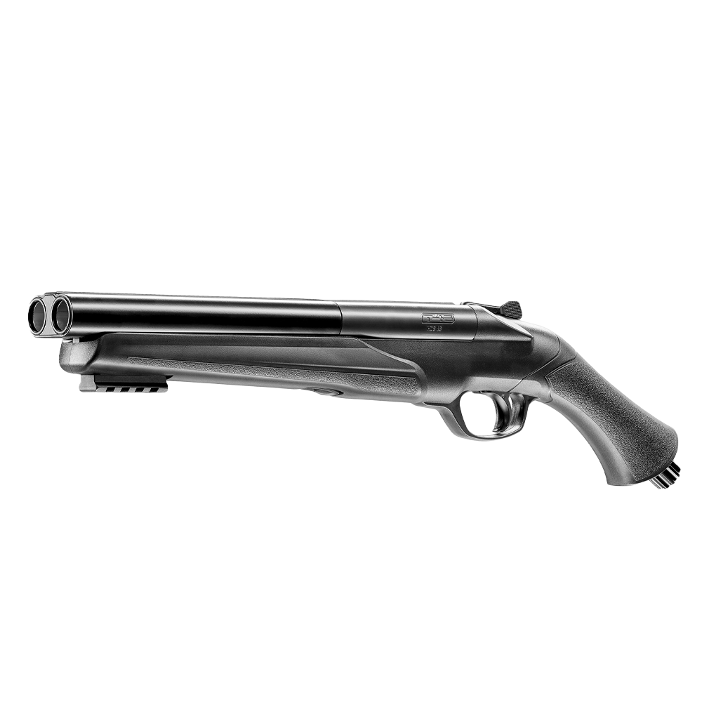 Ett dubbelpipigt T4E luftvapen/paintballmarkör.