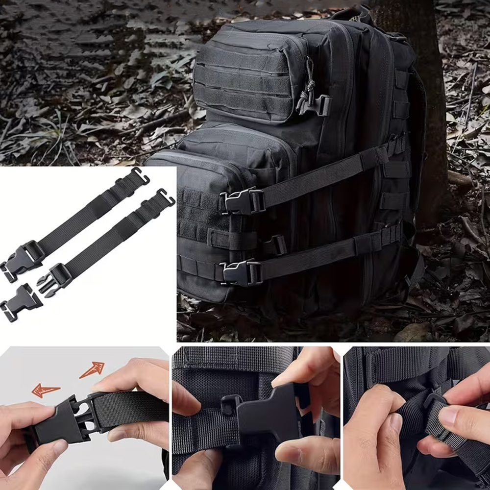 Tactical System MOLLE Backpack Straps – Extended Edition är praktiska och slitstarka remmar för säker fastsättning och kompression av utrustning på ryggsäckar och MOLLE-system. Remmarna är fullt justerbara med en maximal längd på 35,56 cm, vilket gör dem idealiska för att fästa extra packning, sovsäckar, liggunderlag eller annan utrustning.