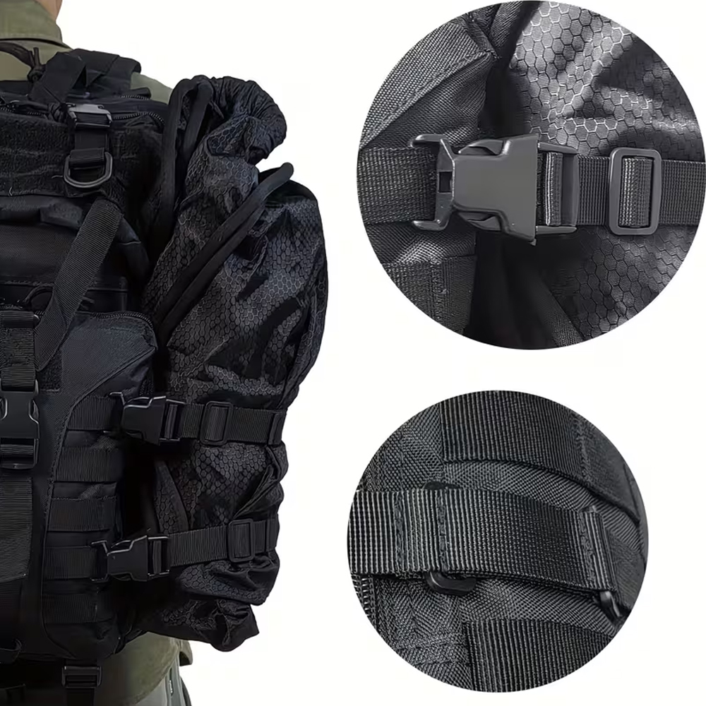 Förlängda och justerbara MOLLE-remmar för säker packning.