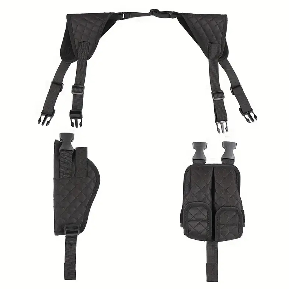 Detta taktiska axelhölster är utformat för dig som vill bära din Glock 17 eller 19 diskret och bekvämt. Den klassiska designen med dubbla axelremmar passar både vänster- och högerhänta användare. Tillverkat i slitstark nylon med justerbara remmar för perfekt passform under jackan. Idealisk för civil säkerhet, väktare eller airsoftspel där dold bärning krävs. Hölstret håller vapnet säkert men tillgängligt vid behov