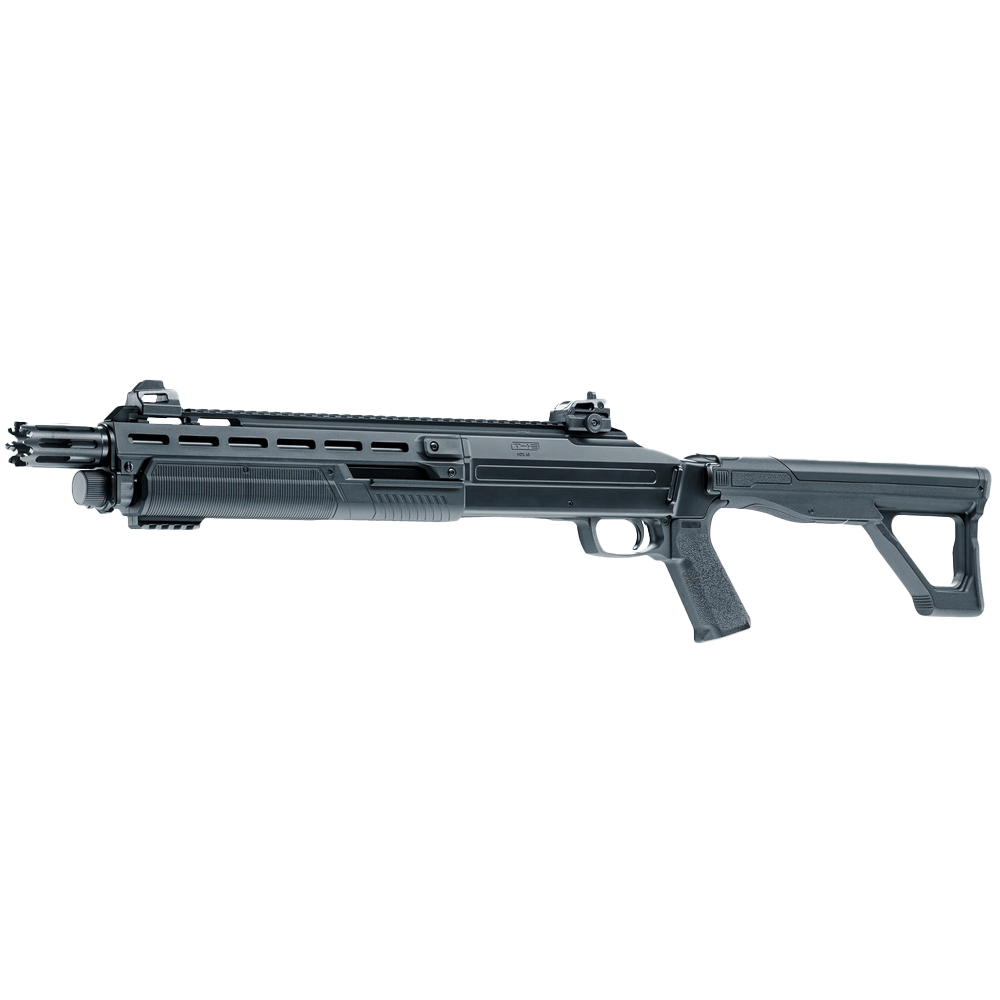 Tack vare dess Quick-Piercing System kan geväret förvaras i månader i standby-läge. Ett lätt slag på baksidan av stocken är tillräckligt för att tränga igenom de två 12 g CO₂-patronerna, och den optiska och taktila tryckindikatorn visar att du är redo att skjuta. Det interna rörmagasinet rymmer 16 runda bollar.