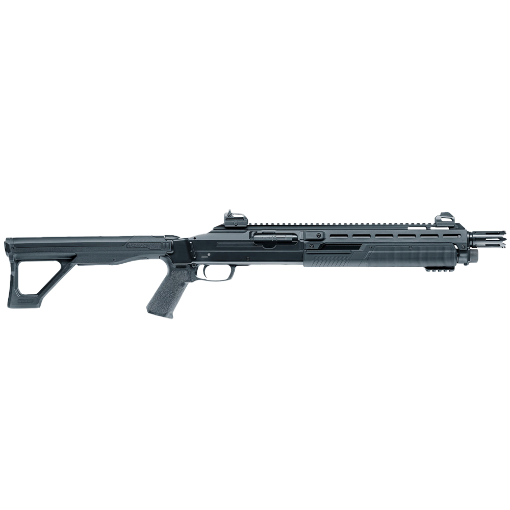 Extrema situationer kräver extrema åtgärder. Det är här .68-kalibern T4E Tactical Xtreme 68 pumpgevär kommer till sin rätt. Med sitt imponerande utseende och imponerande ljud vid laddning visar det att det betyder allvar. Användare kommer att uppskatta den intuitiva driften. Den robusta mottagaren i helmetall och den massiva nosbromsen tar upp vikten på TX 68 till mer än 3 kg för extra stabilitet. M-LOK-fack på sidorna förbättrar mångsidigheten hos TX 68.