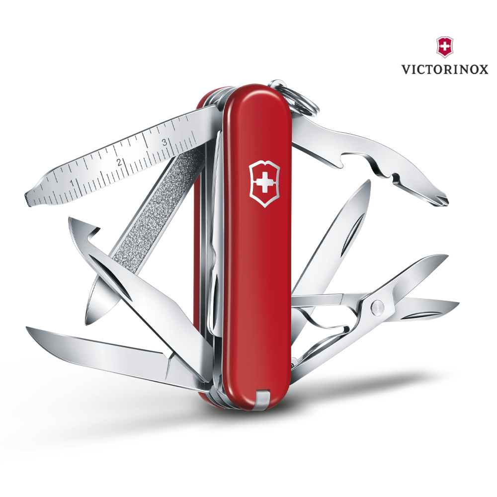 Fickkniv MiniChamp i klassisk Victorinox röd med 18 funktioner.