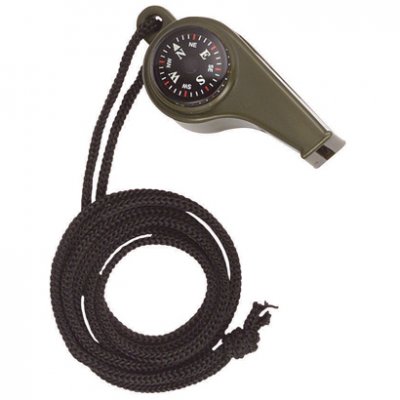 Visselpipan har även en kompass och en termometer som kan vara mycket väl tillhands vid friluftsaktiviteter.