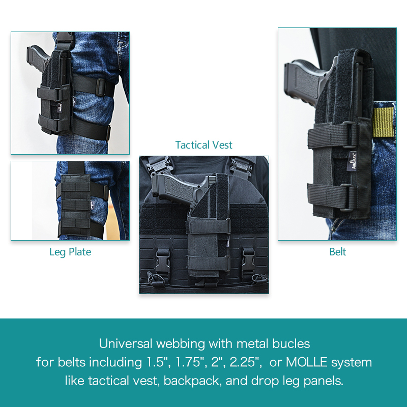 Passar de flesta fullstora eller kompakta handeldvapen som Glock G17, G19, Hi capa, 1911, Beretta 92, Sig Sauer 226 med eller utan lampa.