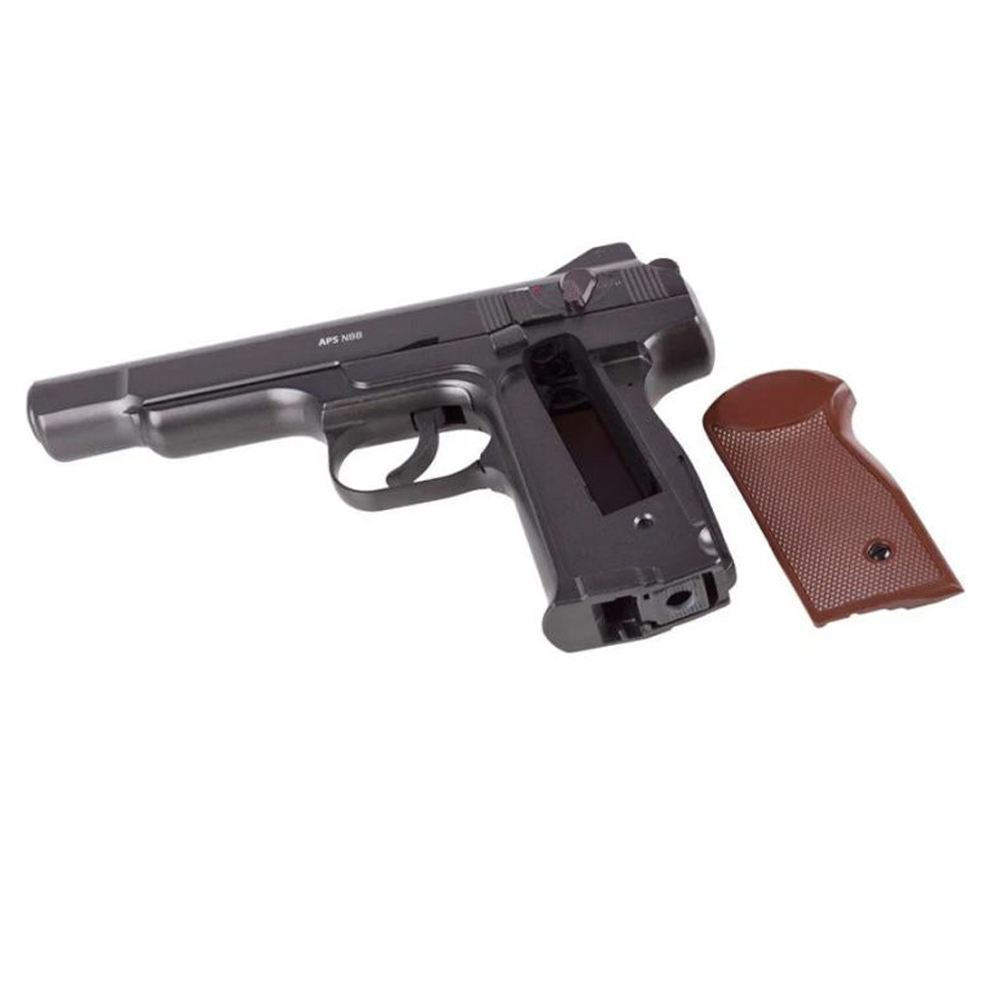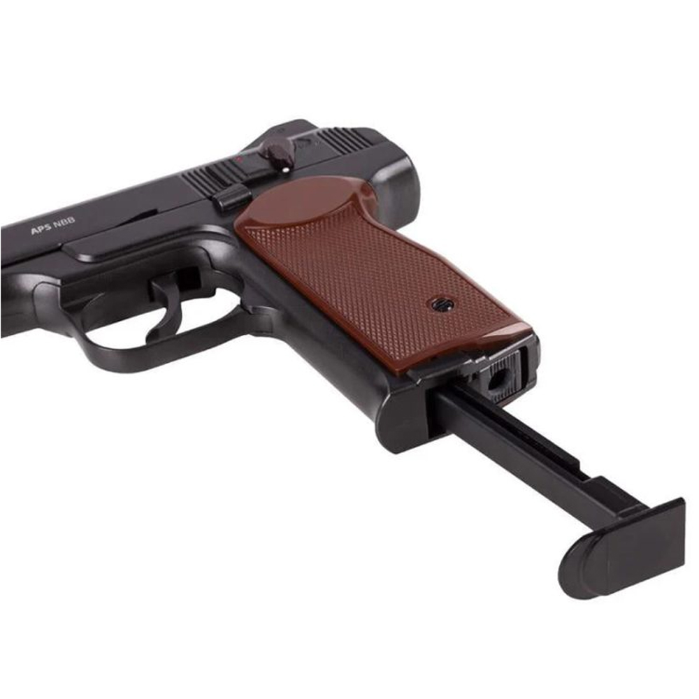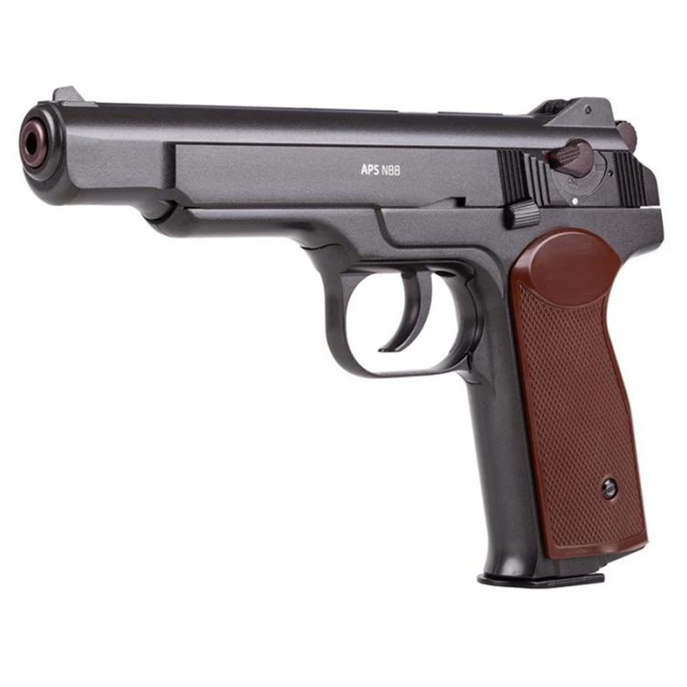 Borner APS CO₂ luftpistol i 4,5 mm är en kraftfull och realistisk modell för målskytte och träning. Med sin fullmetallkonstruktion och höga vikt på över 1 kg ger den en autentisk känsla i handen. Pistolen drivs av CO₂ och använder stålrundkulor (BB), vilket ger en imponerande utgångshastighet på upp till 110 m/s. Det stora magasinet med kapacitet på 22 skott gör den perfekt för längre skjutpass utan frekventa omladdningar. Den robusta designen i kombination med enkel hantering gör denna modell till ett utmärkt val för både nybörjare och erfarna skyttar..