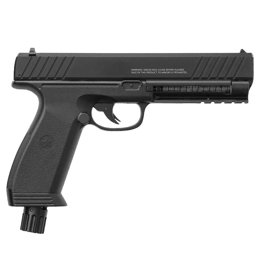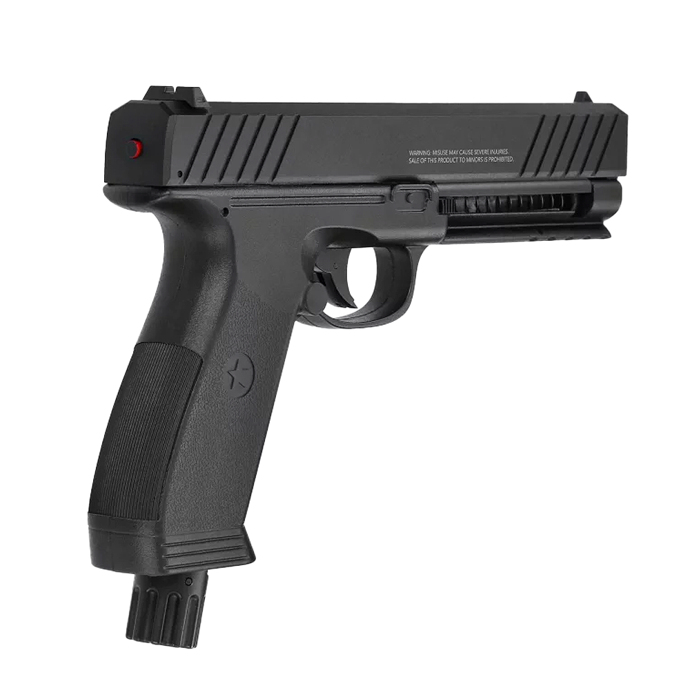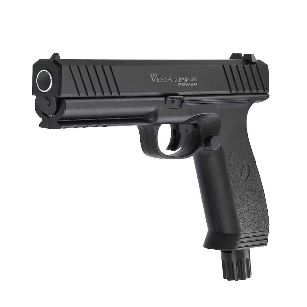 Ett T4E skjutvapen som avfyrar projektiler i kaliber 0,50 och förlitar sig på en 12g Co2-kapsel som sin kraftkälla. I nödsituationer kan du snabbt sätta in den genom att hålla CO₂ kapseln i vapnet och punktera den med ett riktat slag om det behövs.