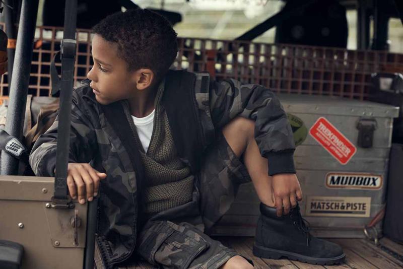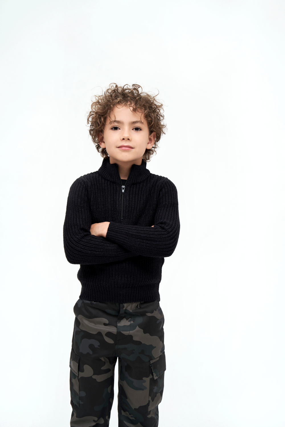 En tidlöst barntröja med elastiskt stickat material från Brandit.