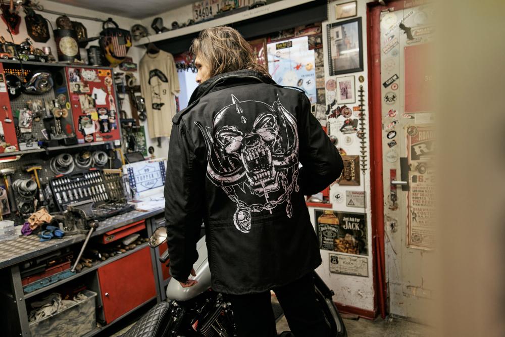 Jackan har dessutom en stor ryggtavla med Motörhead Warpig huvud.