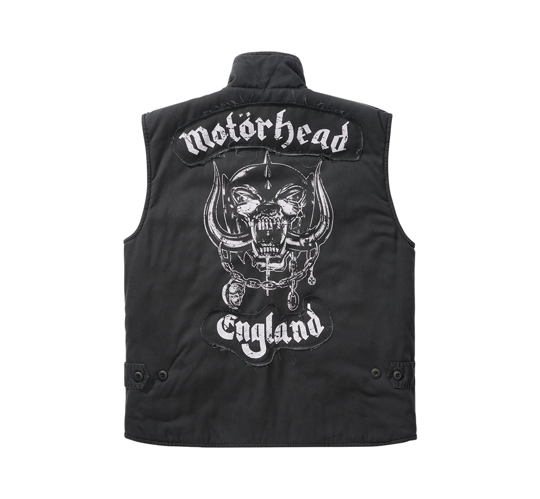 En riktigt snygg väst från Brandit Bastards med Motörhead tryck både på framfickorna och på rygg.