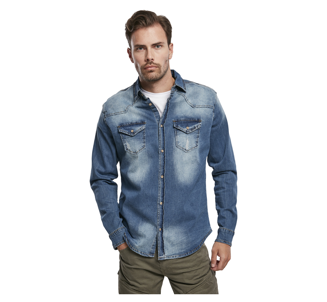 En denim skjorta från Brandit. Denna skjorta är av bra kvalite och har en så kallad "used-look".