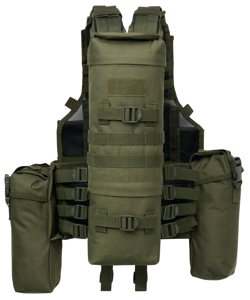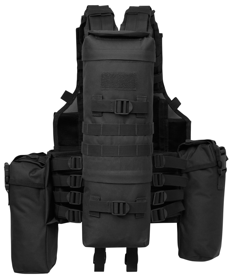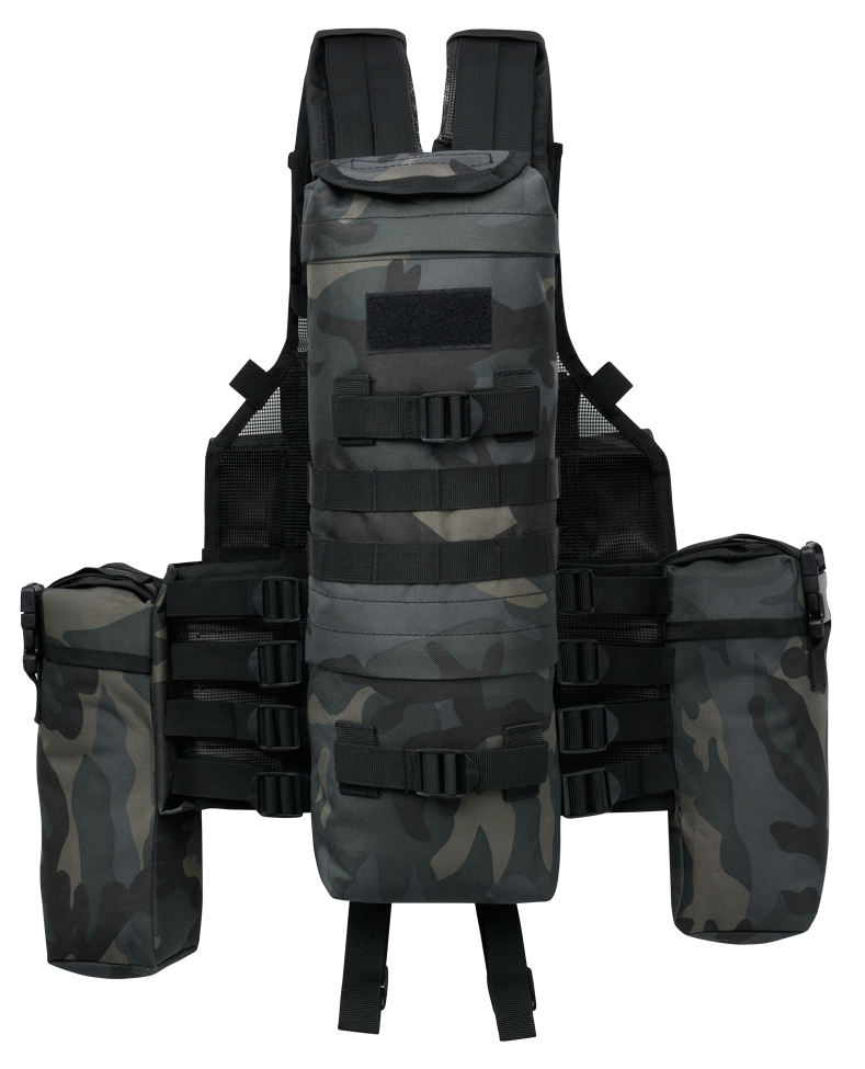 Magasin fickor, utility fickor och andra förvarings-fickor. Total 12st fickor varav 6st magfickor. Västen är mycket speciell för sin långa ficka för camelbak förvaring etc.