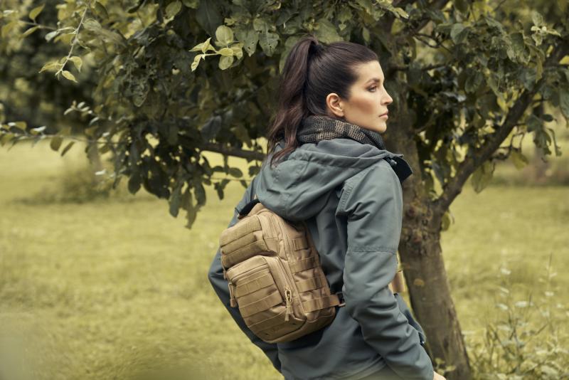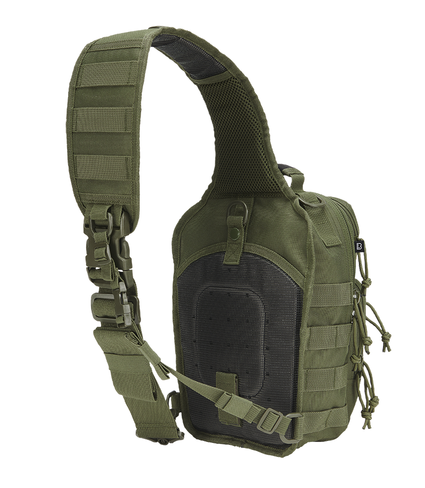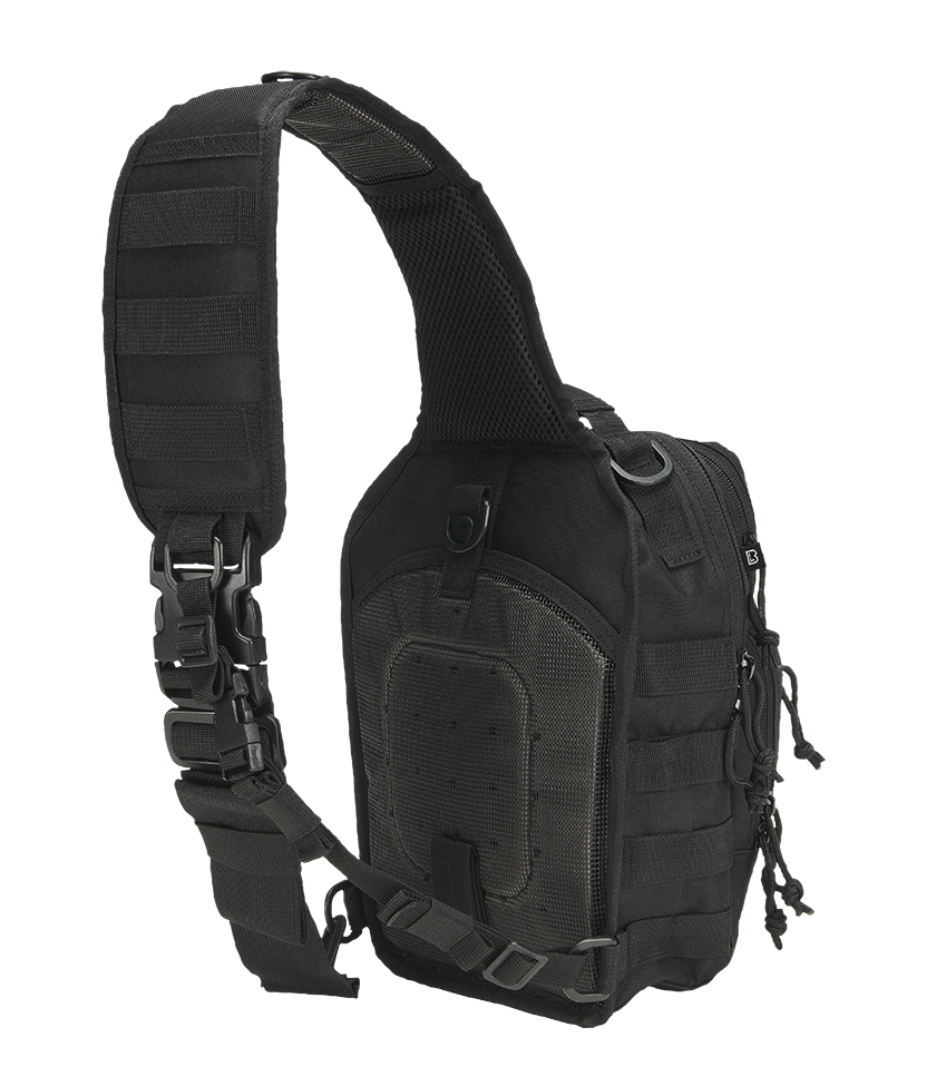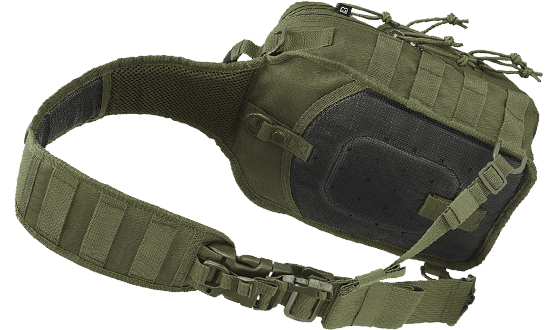Väskan är mycket justerbar, med extra elastiska remsor, och har ett vadderat, andningsbart nät för extra komfort. Handtaget är även det vadderat, och detta Sling Pack är dessutom utrustat med rygglås och D-ringar samt MOLLE-system för ytterliggare utrustning.